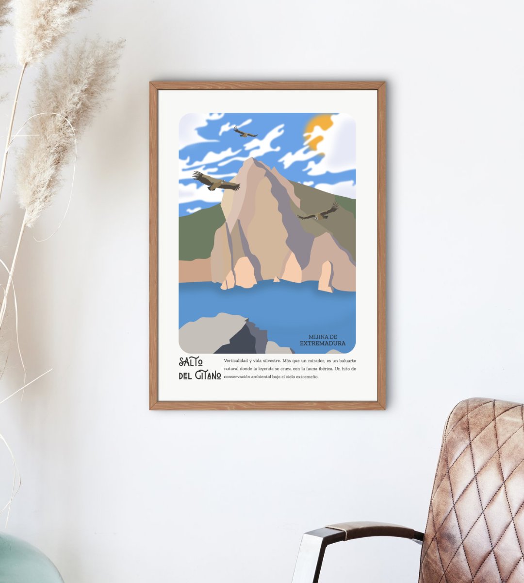 El Salto del Gitano en Monfragüe es el mirador donde el Tajo se hace eterno y los buitres son los dueños del cielo. Esta lámina captura la esencia salvaje de nuestra tierra, perfecta para amantes de la ornitología, de la FIO y de los paisajes que te dejan sin aliento.