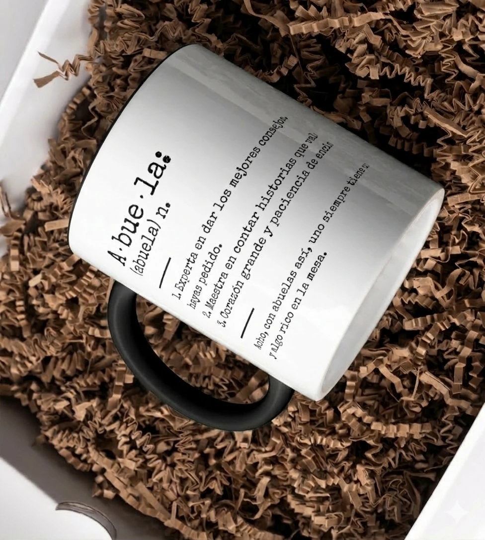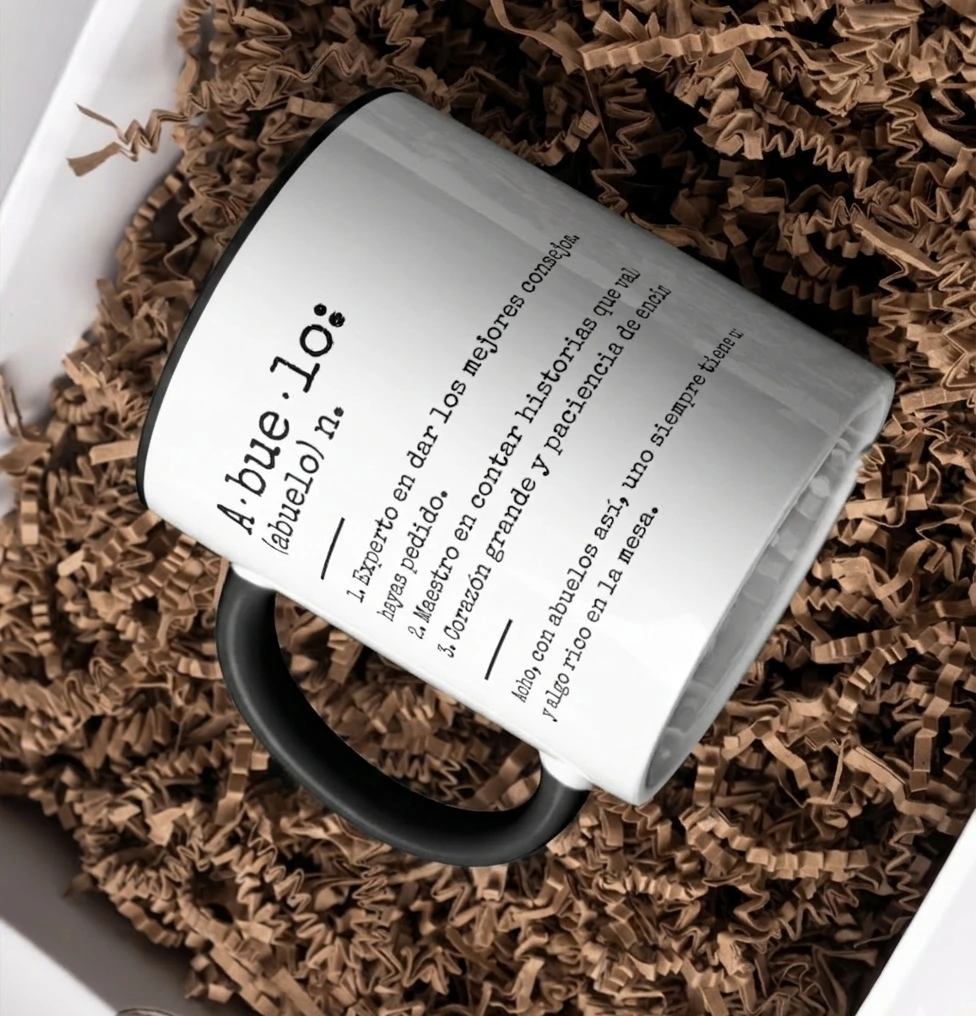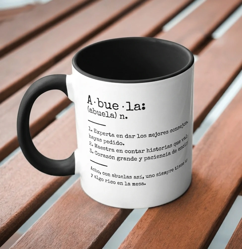 La taza recoge esas expresiones y detalles que definen el día a día con ellos, con una estética cuidada que queda genial tanto en la mesa del salón como en la cocina de siempre. Es el recordatorio diario de que ser abuelo es ser el refugio de todos, y si es con nuestro acento, ¡qué alegría más grande!
